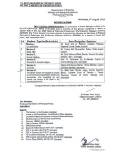 Islamabad : Can you believe that the government of Shahbaz Sharif would appoint a dead person as a member of the National Rahmatul lil Alameen Wa Khatumun Nabayyin Authority ?. Your answer to this question will be a big NO . But it happened in the case of Professor Dr Farkhanda Zia .